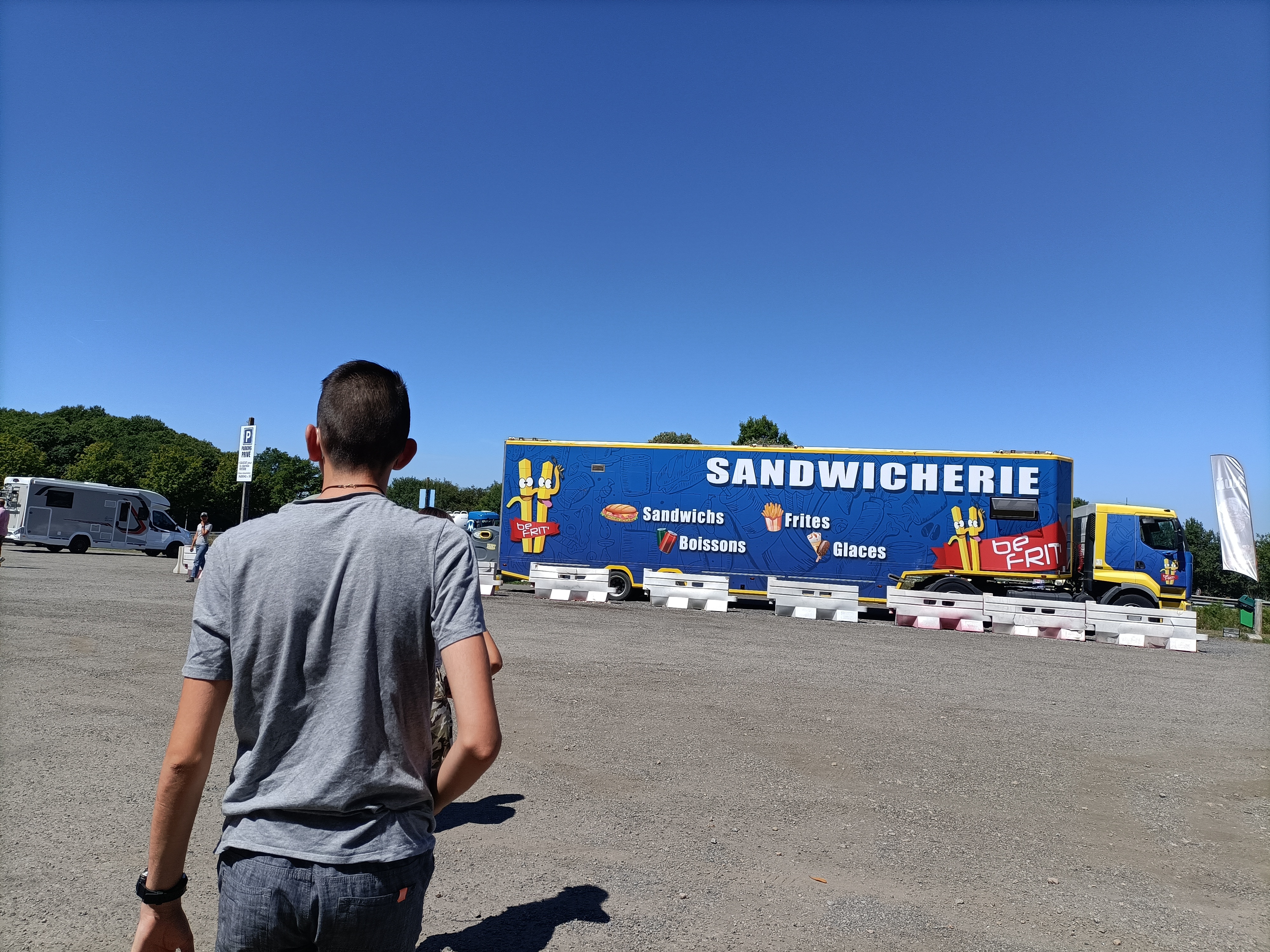 Parking agréable pour faire un arrêt car il y a un camion ki fait des frites et des sandwichs